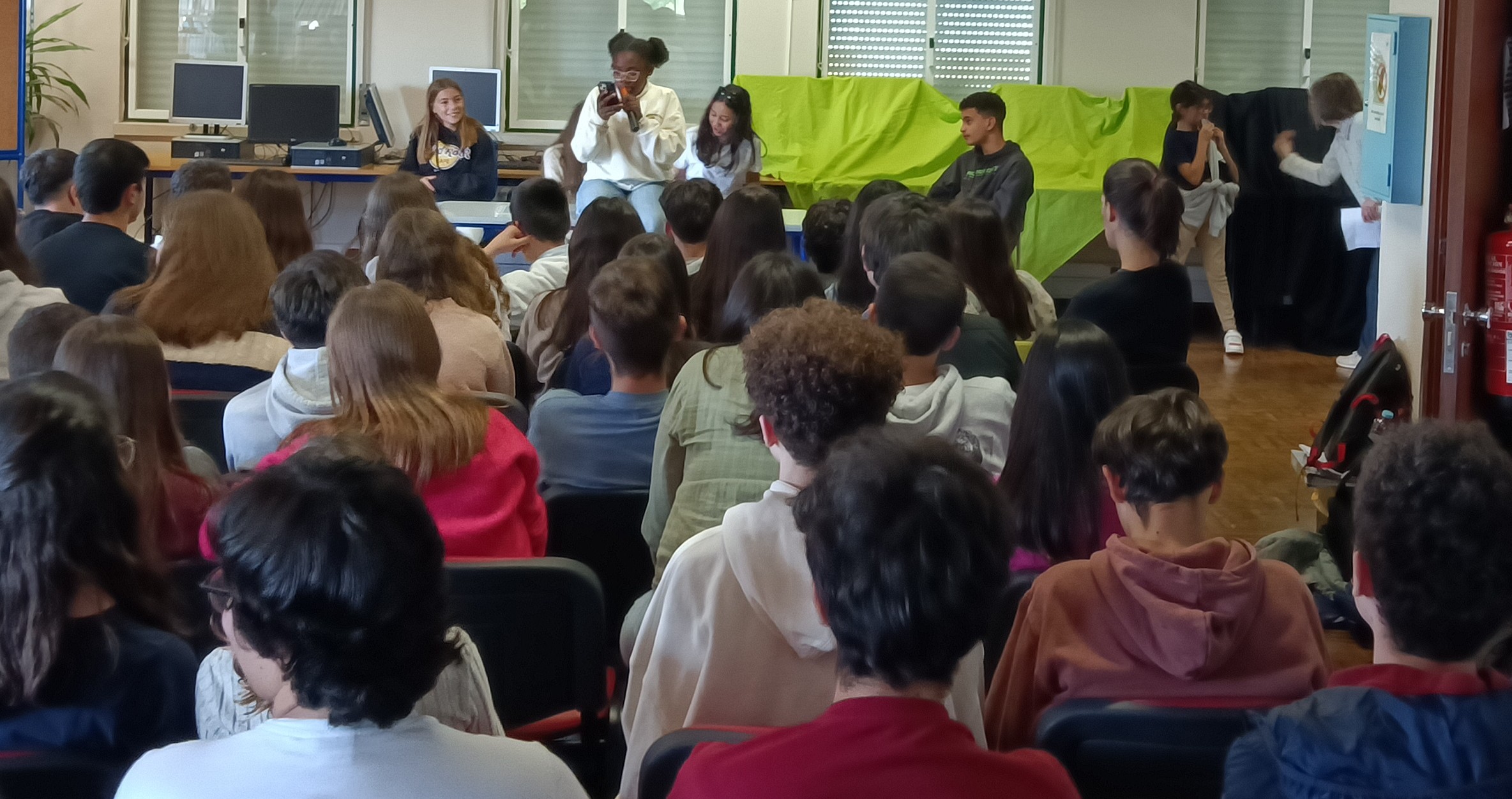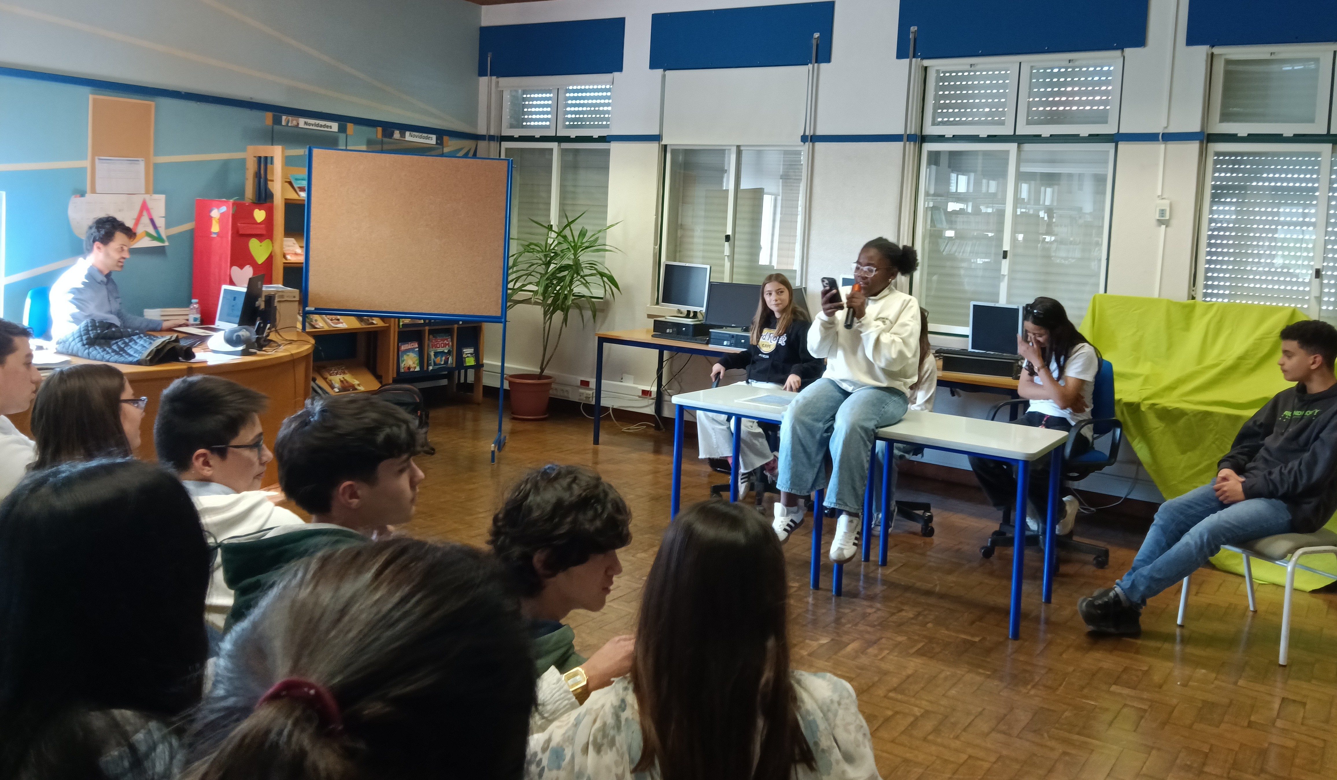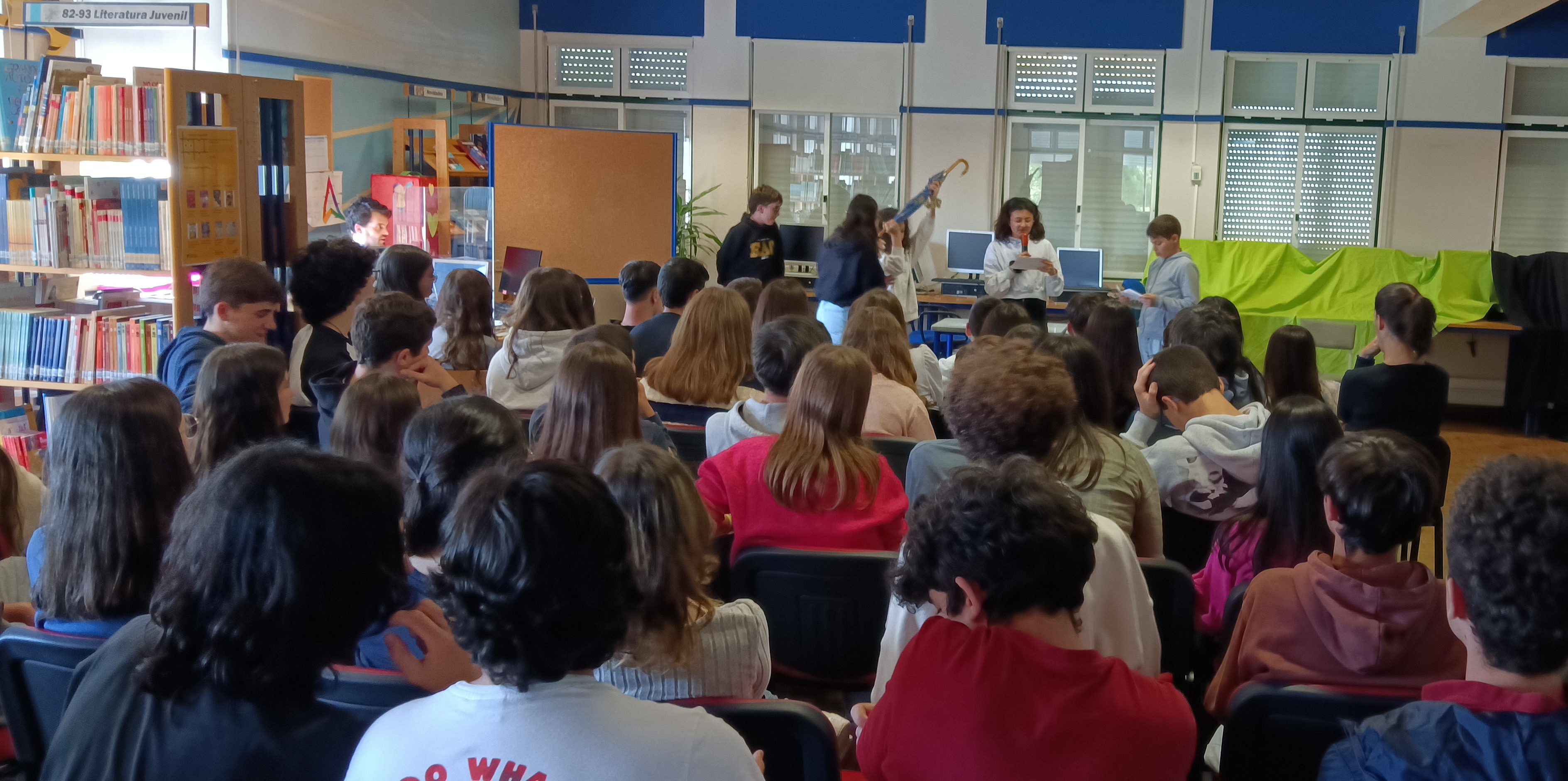 Nos dias 22 e 23 de abril, na biblioteca da EBCV, apresentaram esta performance, aos alunos das cinco turmas de 9º ano da EBCV.