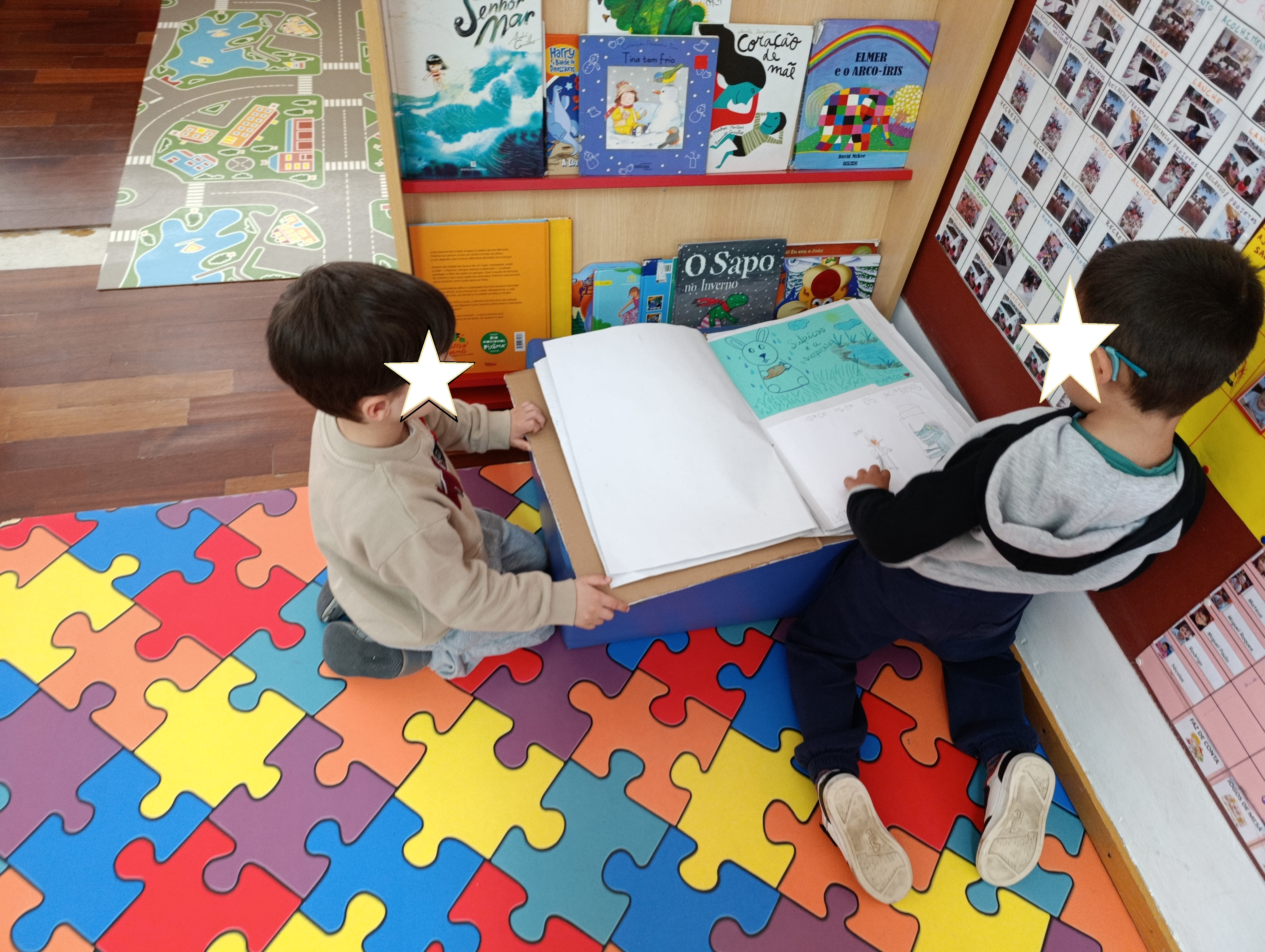 Nos Jardins de Infância das Escolas Galopim de Carvalho, Canaviais e Azaruja as leituras realizadas em casa são registadas num álbum especial e partilhadas em cartazes com toda a comunidade.