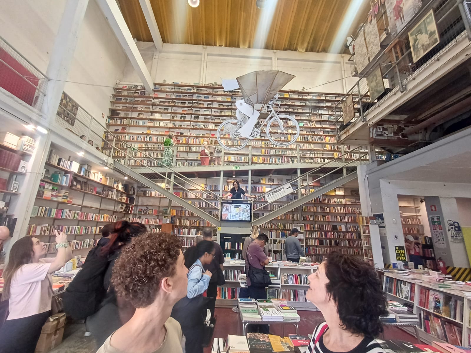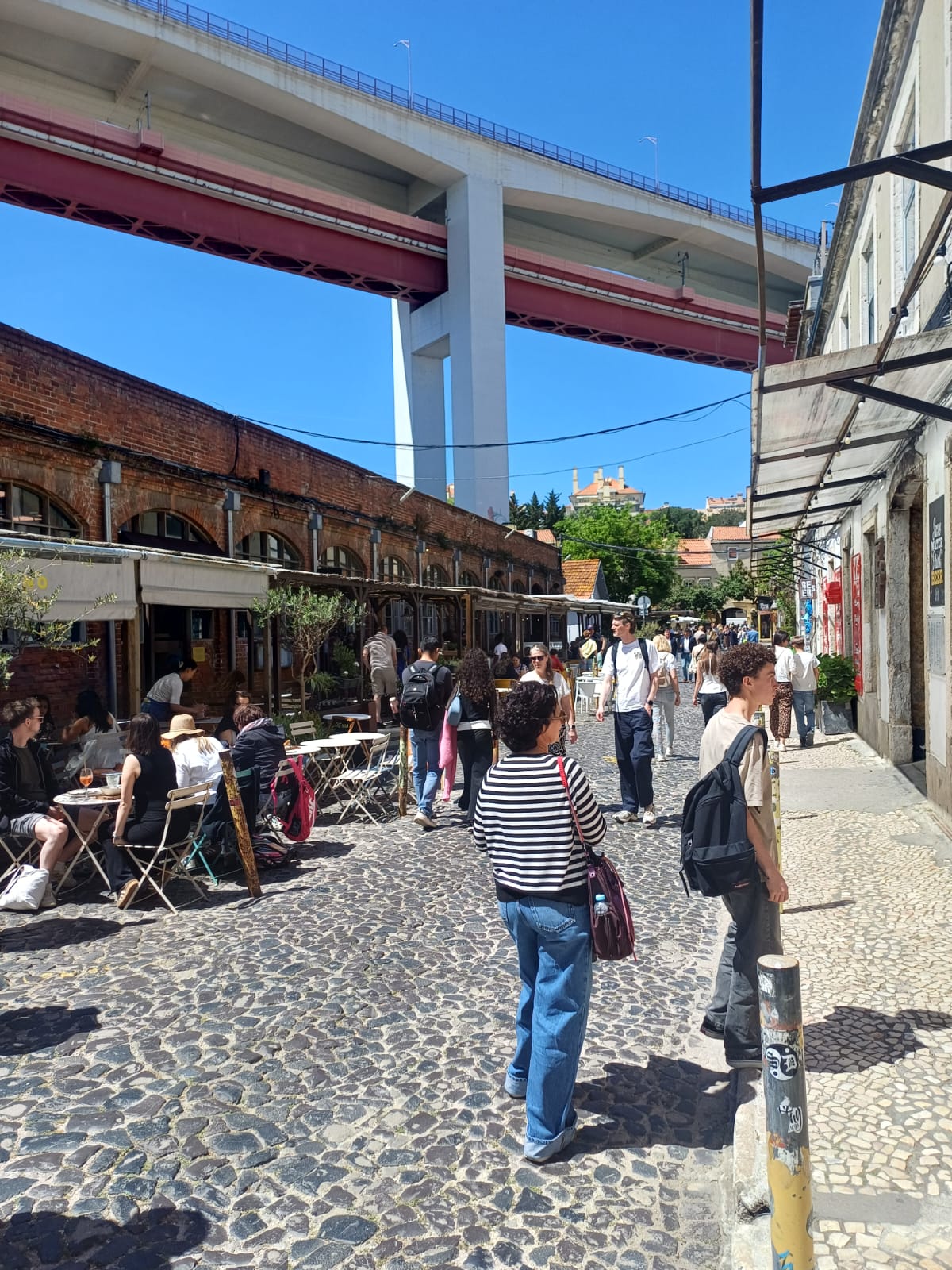 Na hora de almoço, fomos ao LX Factory, espaço comercial e artístico da cidade de Lisboa, localizado no bairro de Alcântara, uma antiga zona industrial da capital portuguesa, em que a estrutura foi reformada em 2008 e hoje representa a inovação, criatividade e o empreendedorismo, com inspiração industrial.
